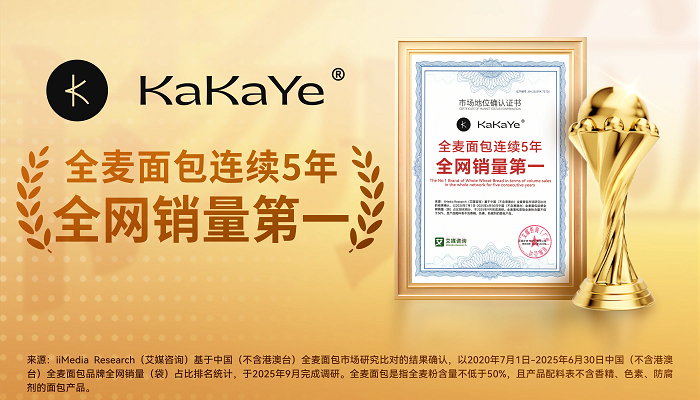 近期,卡卡业获全球领先的新经济产业第三方数据挖掘和分析机构iiMedia Research(艾媒咨询)授予的“全麦面包连续5年全网销量第一”市场地位确认。