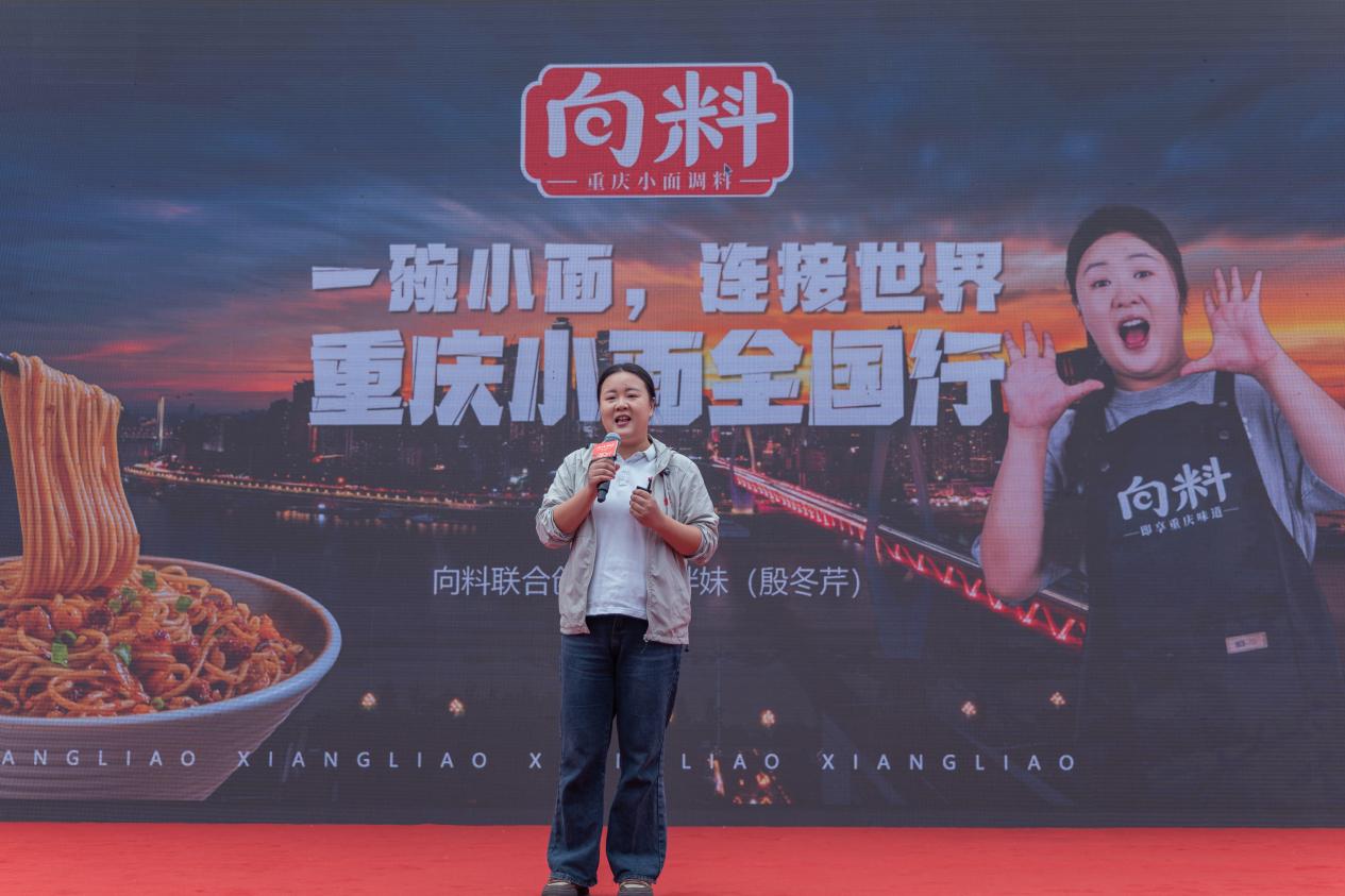 2025年10月24日,“向料重庆小面全国行”出征启动——首站成都。这场以“挑战到100个城市请100万人吃正宗重庆小面”为目标的品牌活动,在联合创始人胖妹的带领下正式启航,并成功将“向料重庆小面调料”所承载的正宗重庆小面风味带入成都,为当地消费者带来了一场味觉盛宴。