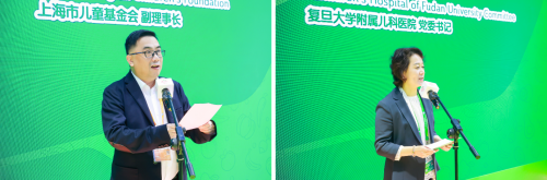 上海市儿童基金会副理事长陈勇先生及复旦大学附属儿科医院党委书记李倩女士发言