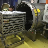 在开始杀菌进热水的过程中,热水是从杀菌釜的底部进入杀菌釜内的,此时杀菌釜罐体的温度处于常温状态,热水经过管道进入杀菌釜过程中,首先接触到的是钢材,热水的温度就将会有所降低,再接触到产品时,温度将会进一步地降低,这样产品的升温时间就会加长,就会减缓了PVDC薄膜肠衣的变化过程。随着热水逐渐从杀菌釜的底部注入杀菌釜内,杀菌釜内的水位逐渐升高,在水面处首先接触到产品的那部分热水不断接触到产品,温度也会逐渐降低(虽然水温降低比重增加,但注入热水使水位升高的速度要大于冷水下降的速度),这样就延缓了火腿肠产品温升的速度,避免的肠衣密封边起皱